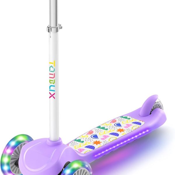 TONBUX Kids Scooter for Age 3-12, Toddler Scooter with 4 Adjustable Heights, Light Up 3-Wheels Scooter, Shock Absorption Design, Lean to Steer, Balance Training Scooter for Kids