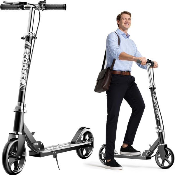 Scooters for Kids 8-12, Teens & Adults – Lightweight, Foldable, 8-Inch Big Wheels, Hand Brake & Bell, 4 Adjustable Height Levels, 240 lbs Max Load, Perfect for School, Campus and Park Rides