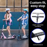 • FASHIONABLE & INNOVATIVE— This kick scooter combines a stylish deck design, an innovative kickstand, a steamlined foot brake, and a convenient carrying strap for effortless portability