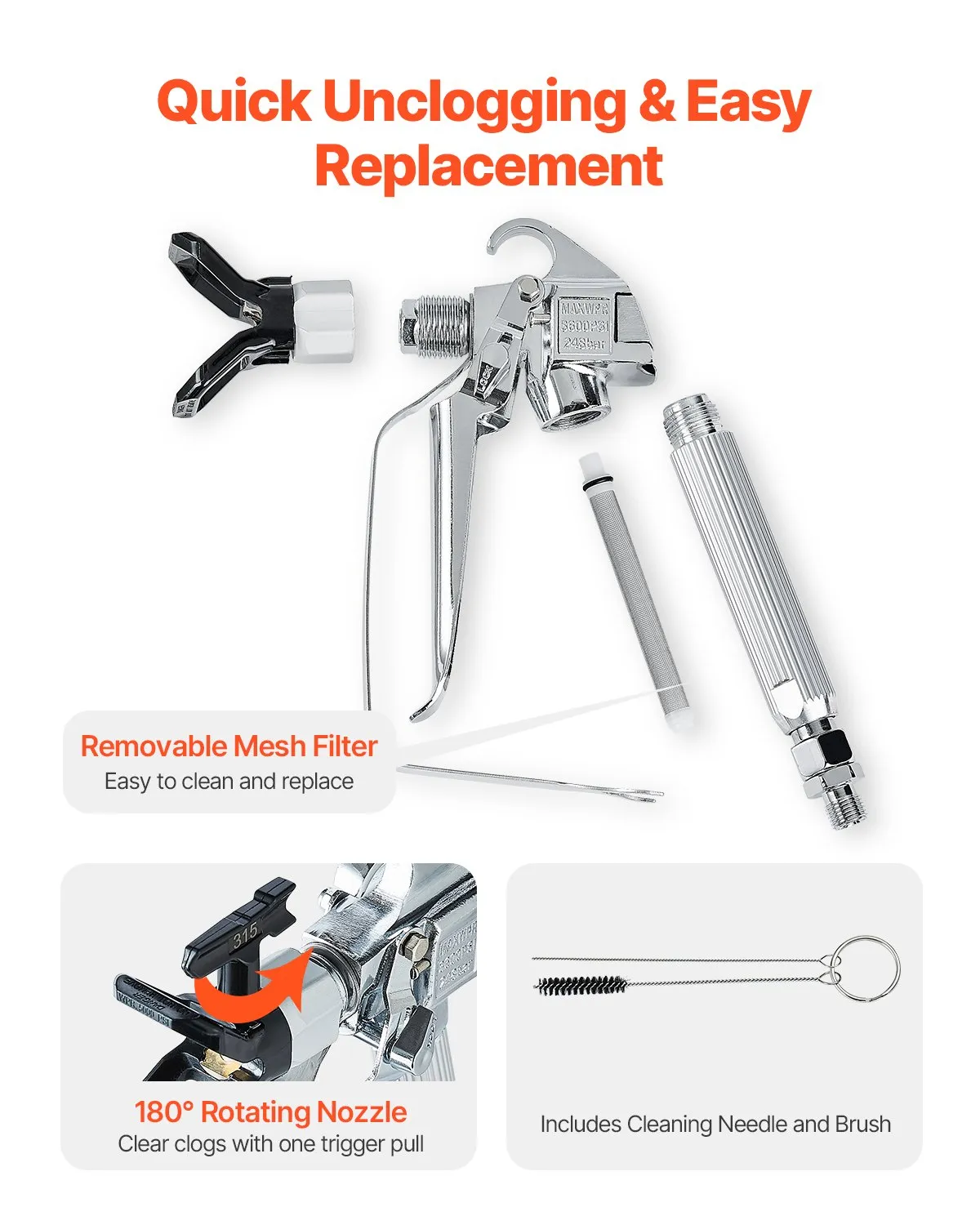 Airless Paint Spray Gun, 3600PSI High Pressure Airless Paint Sprayer Gun with 517 Tip, Swivel Joint Airless Spray Gun Kit with Filters, Cleaning Needle and Brush, for Airless Spraying Machine