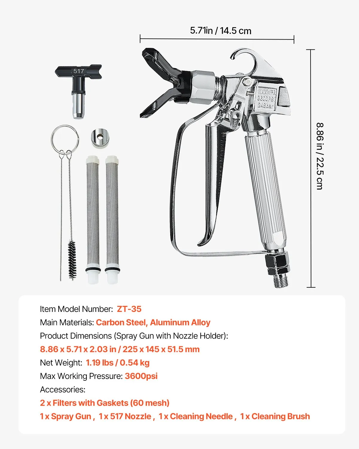 • Compatibility: Our airless paint sprayer gun works with various spray gun brands, making it an ideal choice for both home users and professionals. It is compatible with nozzle model 517