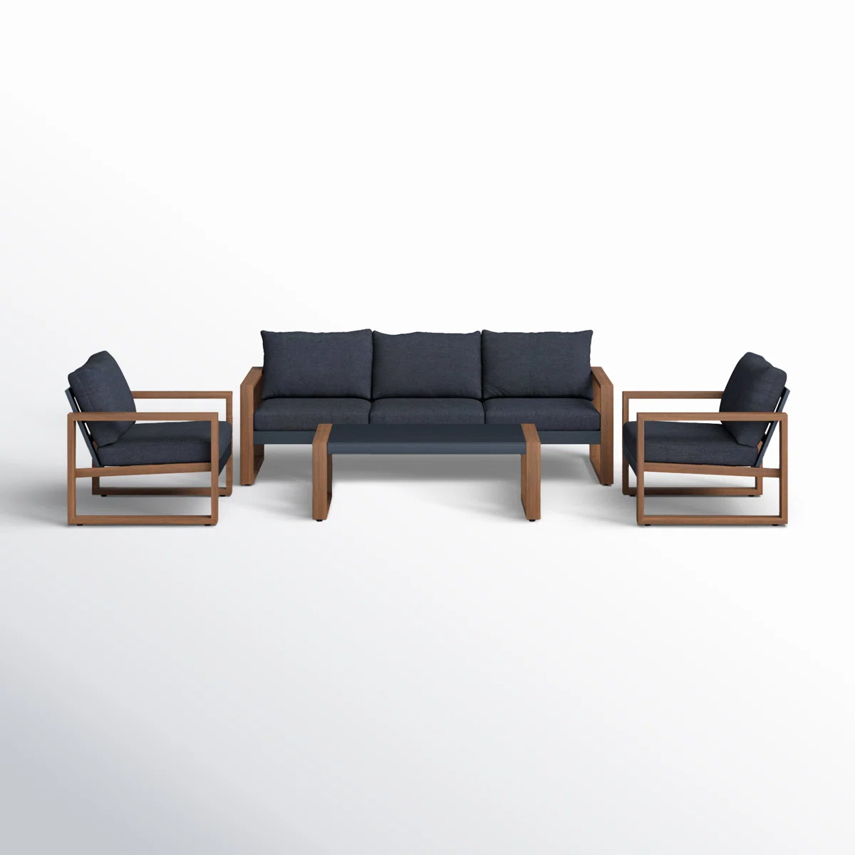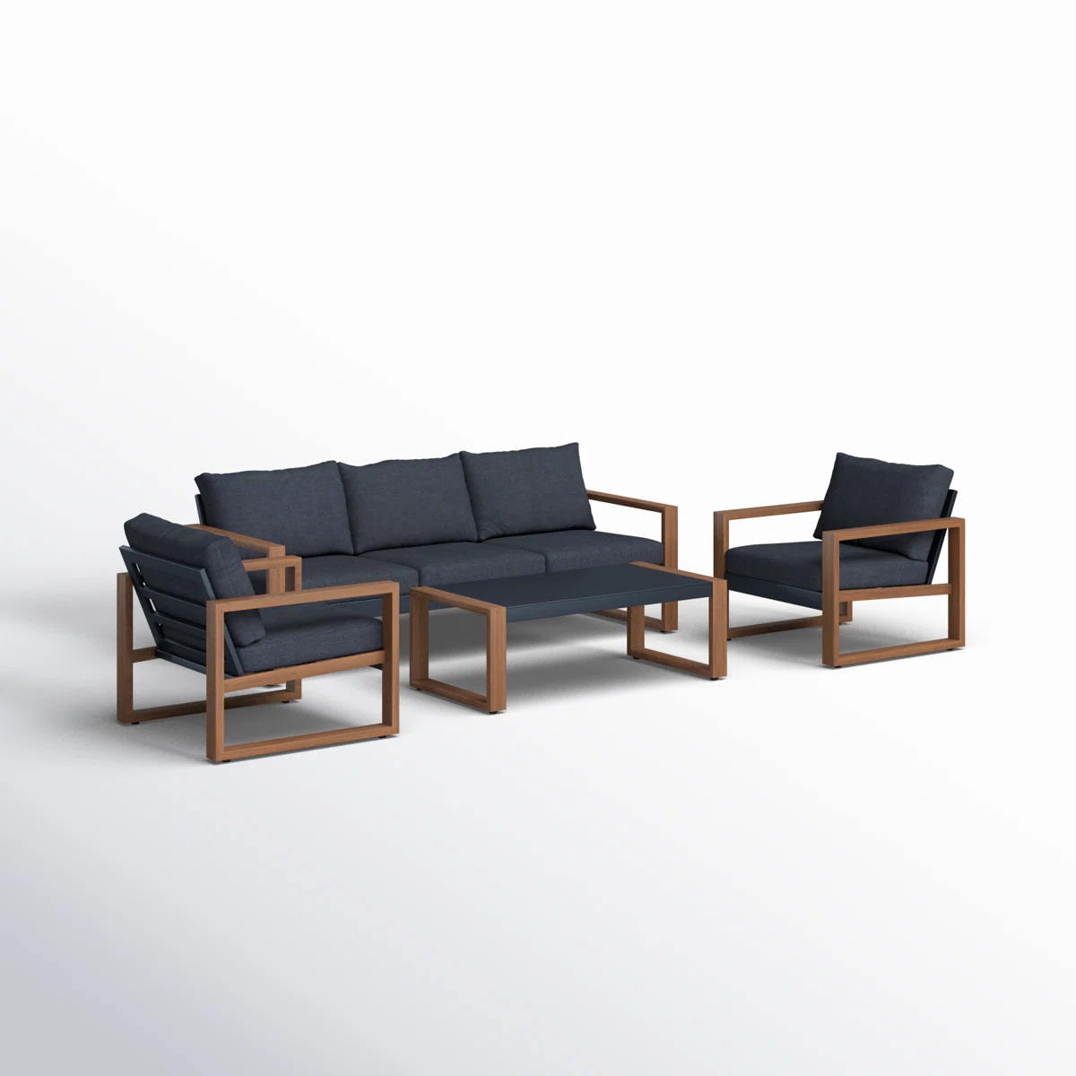 Arunas 5 Person Outdoor Conversation Furniture Set Seating Group with Wood Pattern and Cushions