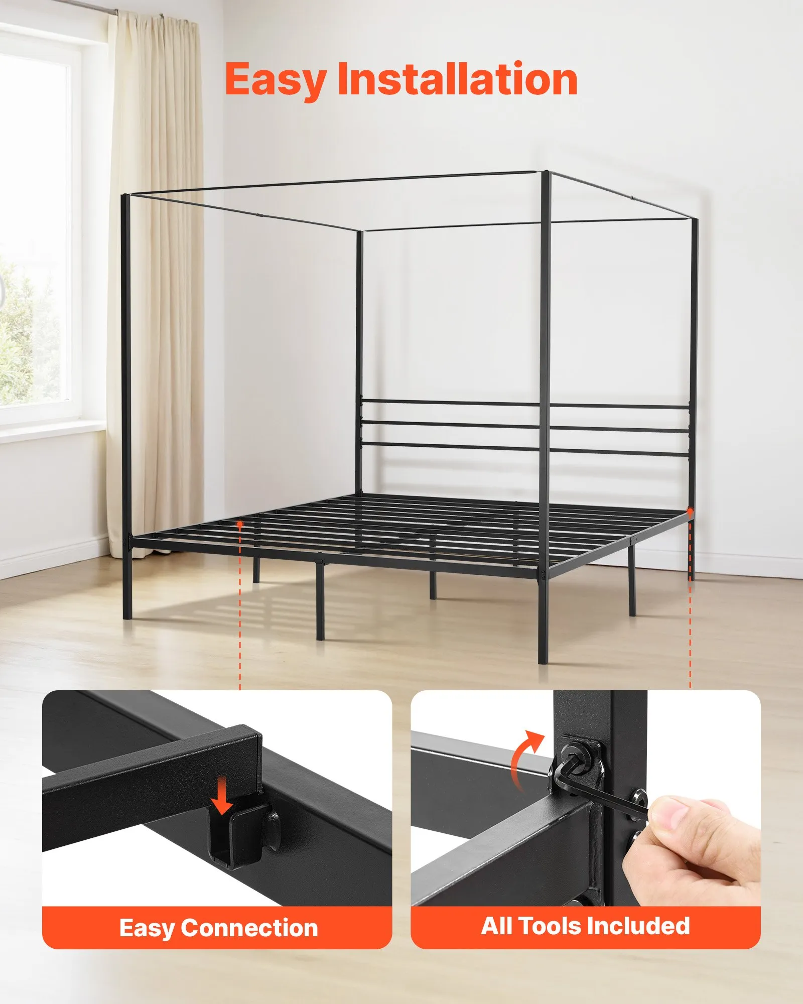 A2: Absolutely. The top frame features three crossbars designed for hanging curtains, string lights, or mosquito nets. The structure is stable and supports lightweight decorations with ease. For security, avoid hanging heavy items.