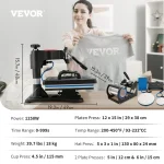 • Pinnacle of Versatility: This 5-in-1 clamshell power heat press from VEVOR comes with multiple attachments, ready to show your boundless ideas by transferring beautiful patterns onto your T-shirts, pillowcases, caps, mugs, cell phone cases, pet collars, ceramic plates, and holiday ornaments. Come and create the most memorable gifts and DIY crafts for your beloved ones.