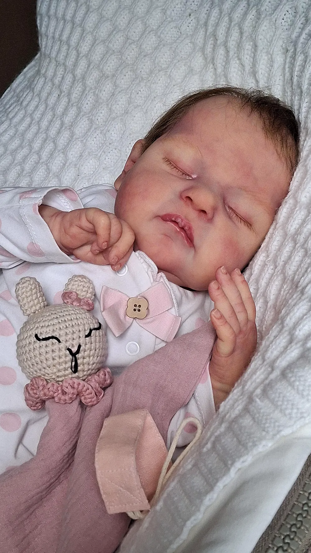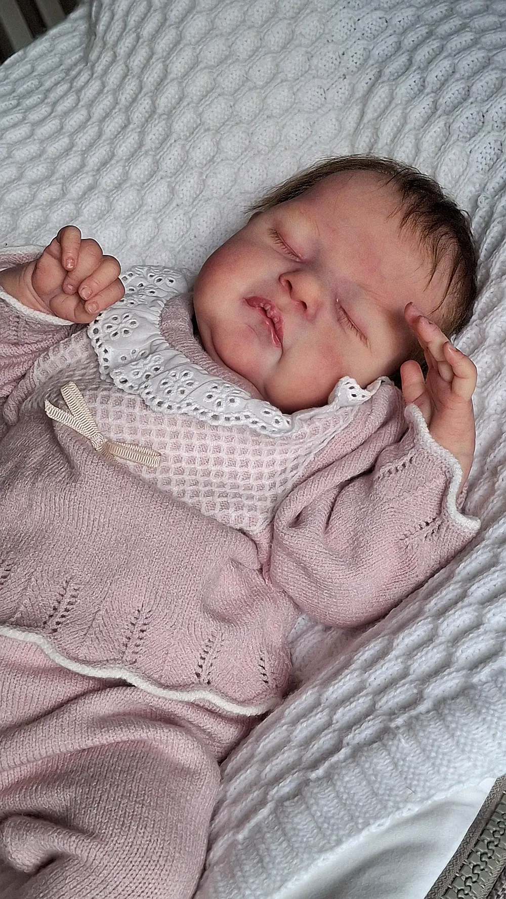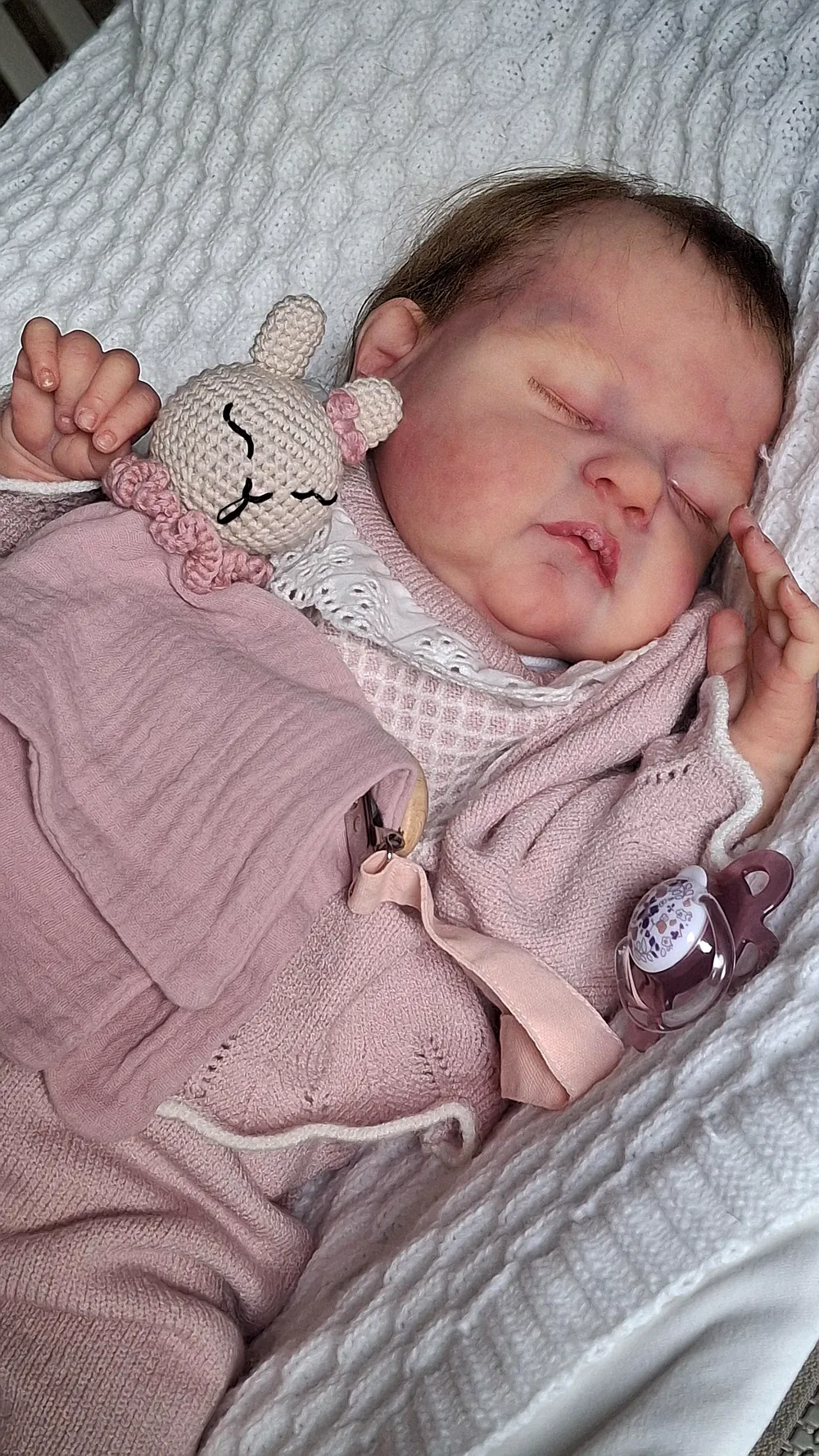 Adèle was born on Monday, December 1, 2025 at 8:36 AM. She weighs 3.135 kg and is 51 cm tall. She comes from the “NOA” kit by artist Cassie Ann Love and comes with a certificate of authenticity. Limited edition, numbered, limited to 500 copies.