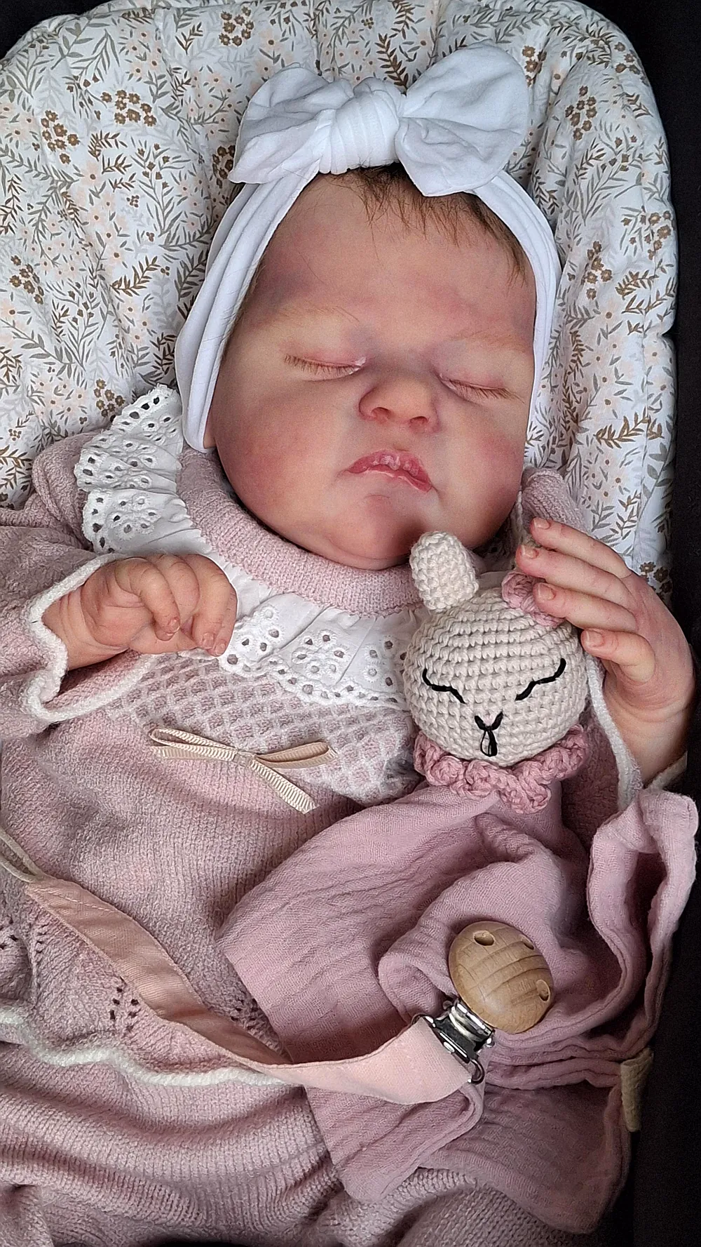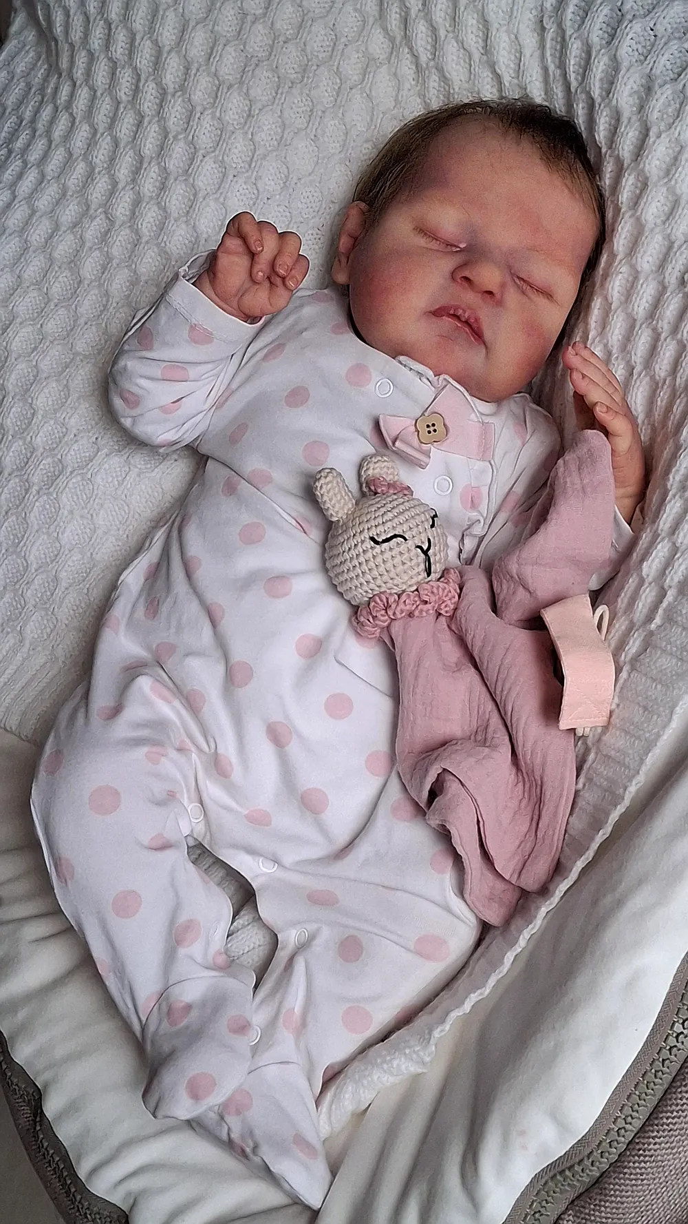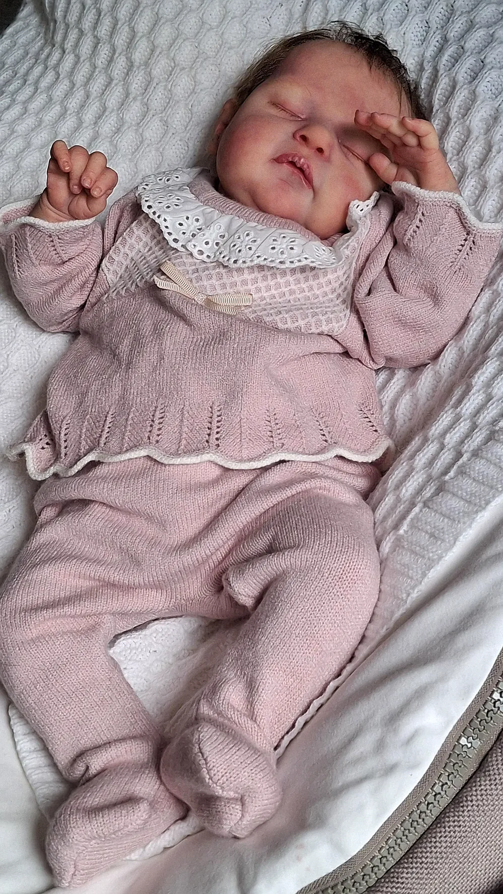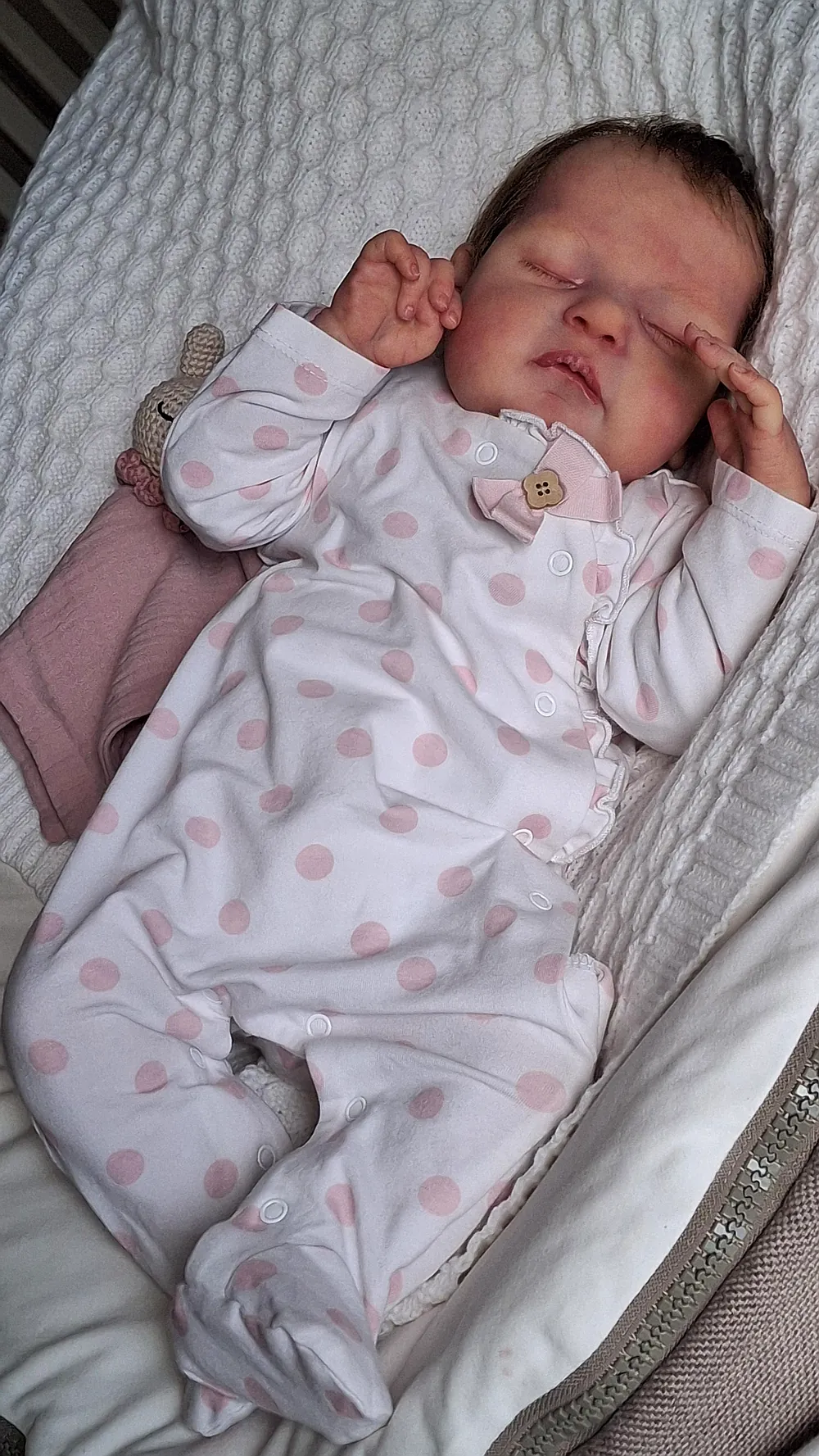 Adèle was born on Monday, December 1, 2025 at 8:36 AM. She weighs 3.135 kg and is 51 cm tall. She comes from the “NOA” kit by artist Cassie Ann Love and comes with a certificate of authenticity. Limited edition, numbered, limited to 500 copies.