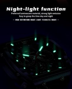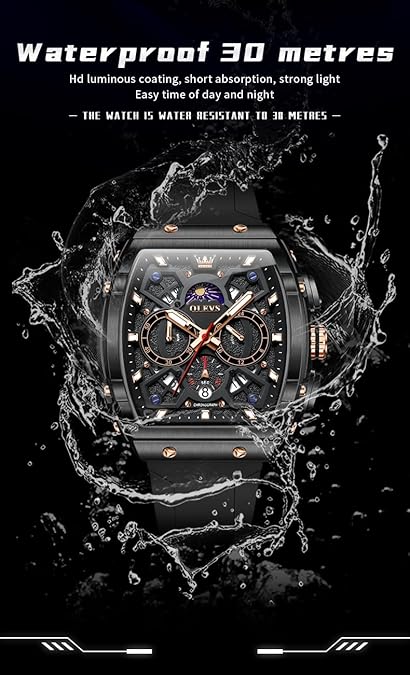 • ⌚ OLEVS Watches Chronograph : Multi-function Original Movement ,3 functional little sub-dials for chronograph minute,cPush/pull crown; Uni-directional stainless steel bezel with black top bezel ring; Functional Subdials: Moon phase dial,60min, 60sec, 24hr; Super Luminous : Luminous Hands & Calibration , is convenient to read the time in the dark(Luminous function needs to be activated by light)