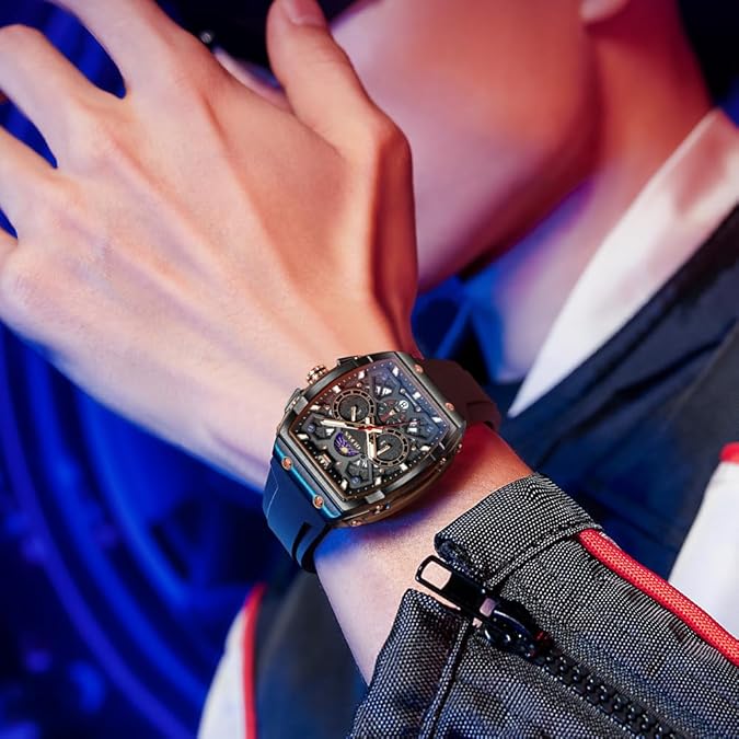 • ⌚ Waterproof Male Watches: 30M (100FT) Water Resistant , withstands splashes or brief immersion in water,Suitable for recreational surfing, sailing and water sports.but not suitable for swimming or bathing
